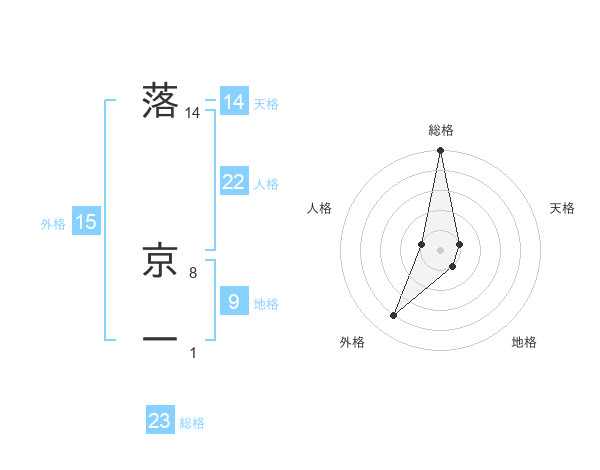 落 京一さんの総格は23画の5点!