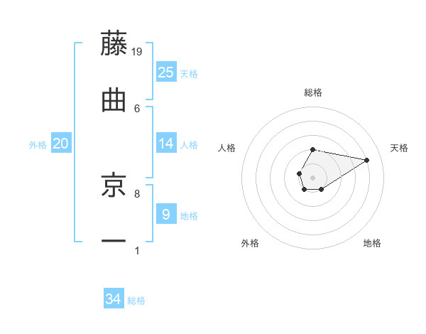 藤曲 京一さんを姓名の画数から五運を鑑定