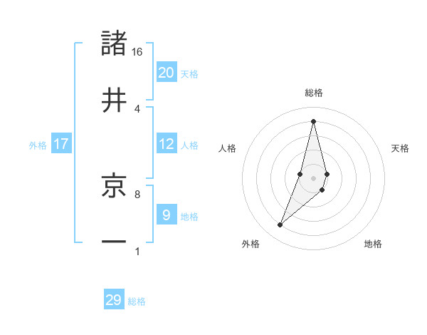 諸井 京一さんの総格は29画の4点!