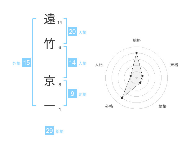 遠竹 京一さんを姓名の画数から五運を鑑定