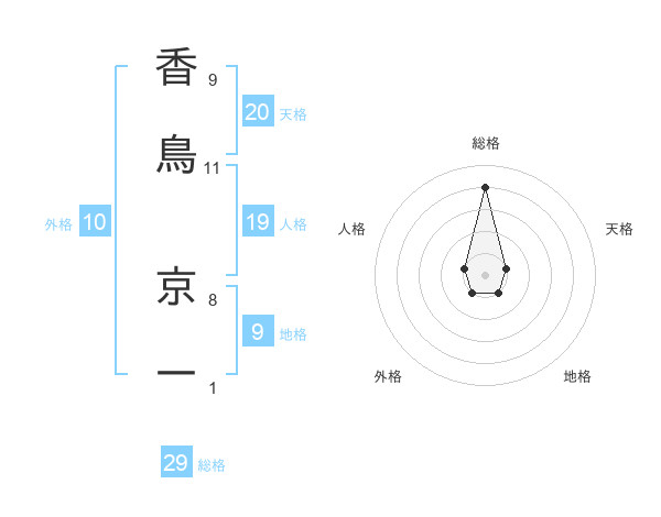 香鳥 京一さんを姓名の画数から五運を鑑定
