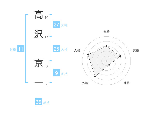 高沢 京一さんの天格は27画の3点!