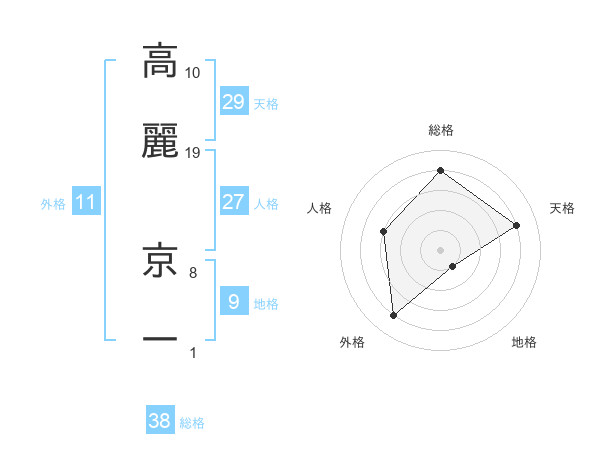 高麗 京一さんの総格は38画の4点!