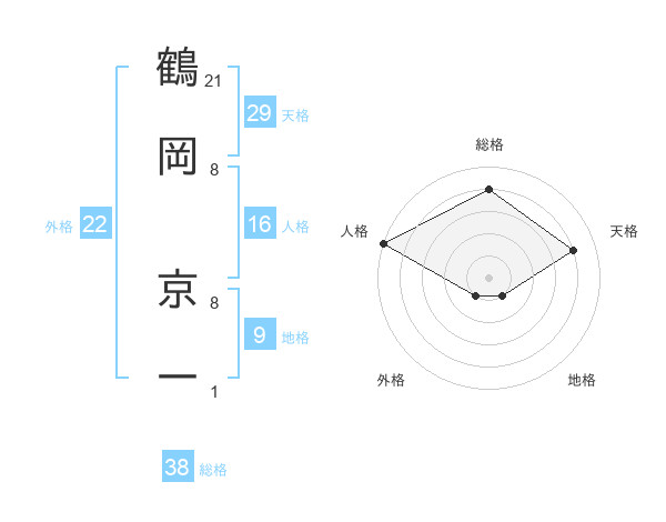 鶴岡 京一さんの総格は38画の4点!