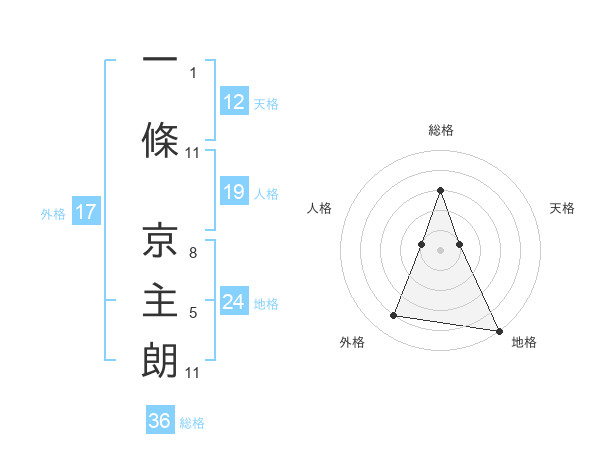 一條 京主朗さんを姓名の画数から五運を鑑定