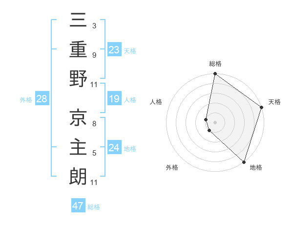 三重野 京主朗さんを姓名の画数から五運を鑑定