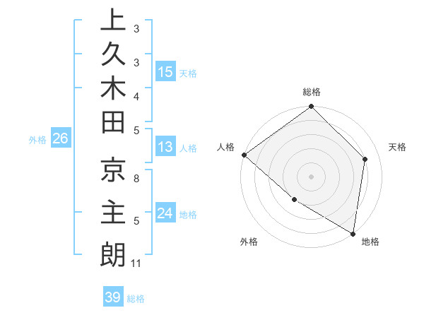 上久木田 京主朗さんの総格は39画の5点