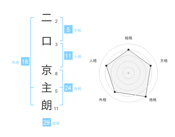 二口 京主朗さんを姓名の画数から五運を鑑定