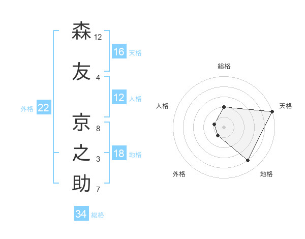 森友 京之助さんの総格は34画の2点!