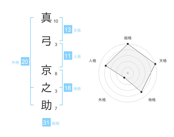 真弓 京之助さんを姓名の画数から五運を鑑定
