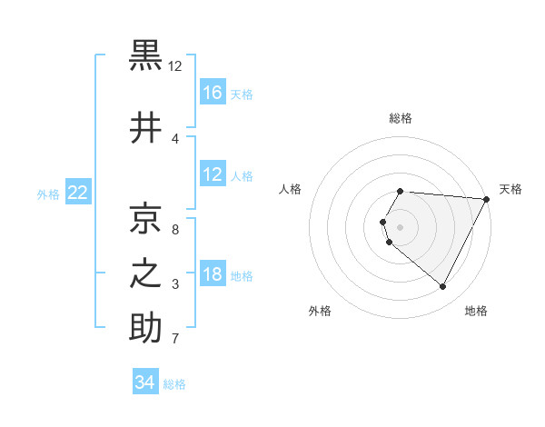 黒井 京之助さんの天格は16画の5点!