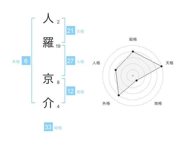 人羅 京介さんの天格は21画の5点!