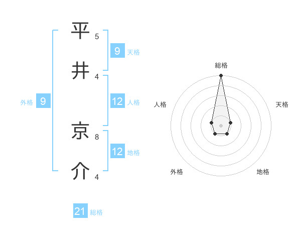平井 京介さんの総格は21画の5点!