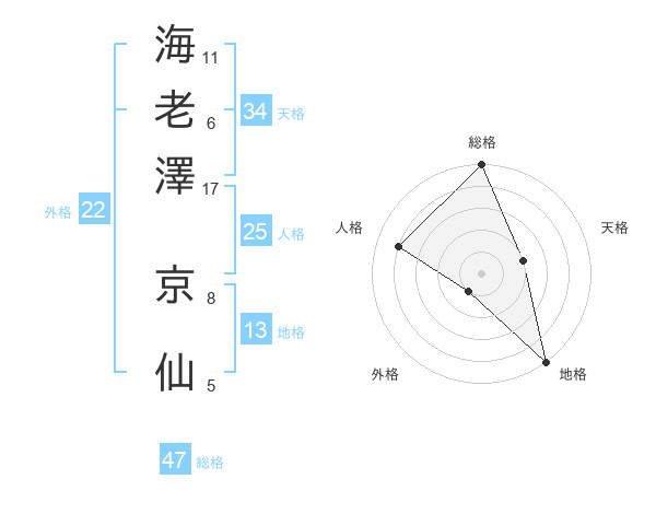 海老澤 京仙さんの総格は47画の5点