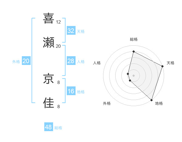 喜瀬 京佳さんの総格は48画の4点!
