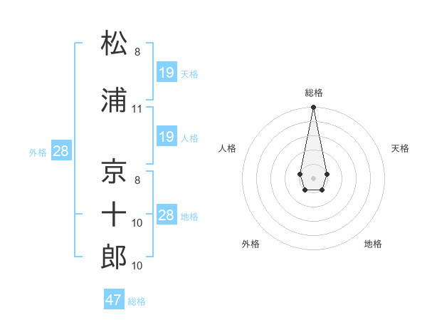 松浦 京十郎さんを姓名の画数から五運を鑑定