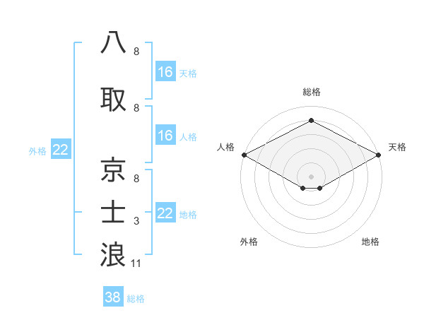 八取 京士浪さんの天格は16画の5点!