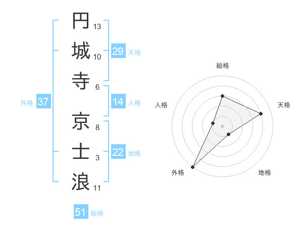 円城寺 京士浪さんを姓名の画数から五運を鑑定