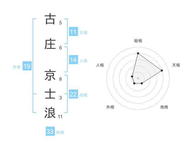 古庄 京士浪さんを姓名の画数から五運を鑑定