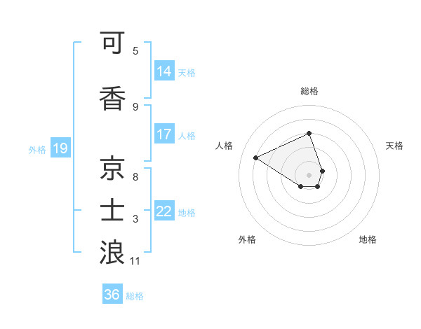 可香 京士浪さんを姓名の画数から五運を鑑定