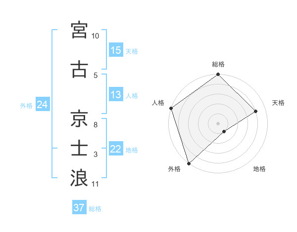 宮古 京士浪さんの総格は37画の5点!