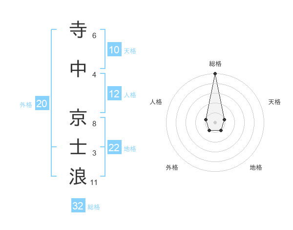 寺中 京士浪さんを姓名の画数から五運を鑑定
