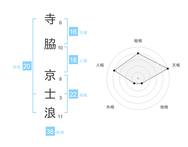 寺脇 京士浪さんを姓名の画数から五運を鑑定