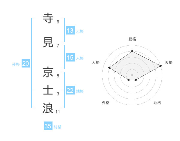 寺見 京士浪さんの天格は13画の5点!
