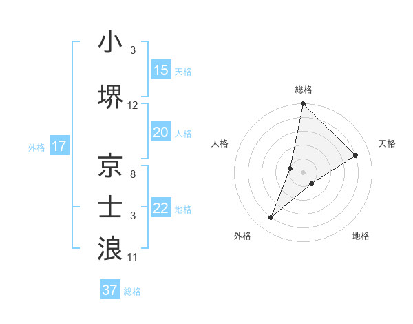 小堺 京士浪さんの総格は37画の5点!