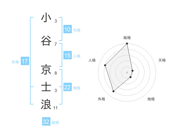 小谷 京士浪さんを姓名の画数から五運を鑑定