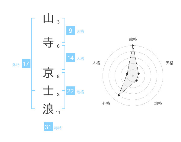 山寺 京士浪さんの総格は31画の5点!