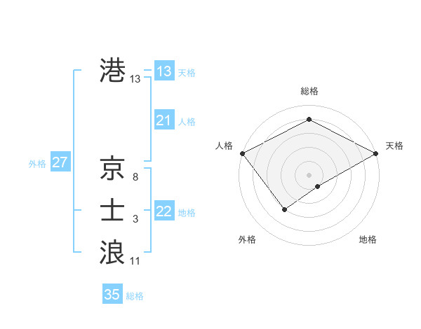 港 京士浪さんの総格は35画の4点!