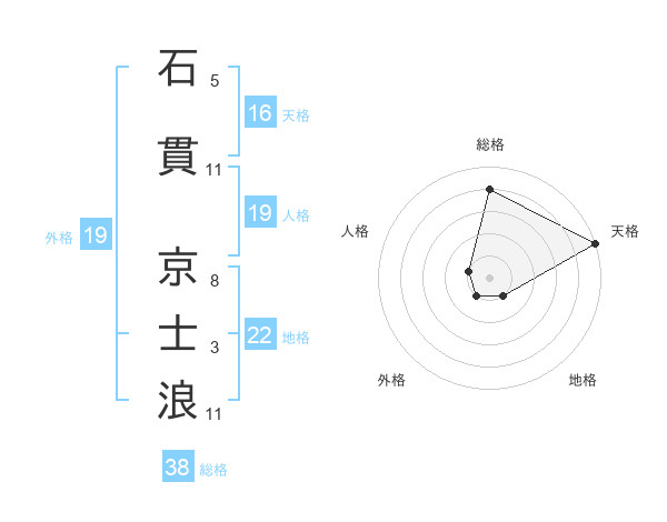 石貫 京士浪さんを姓名の画数から五運を鑑定