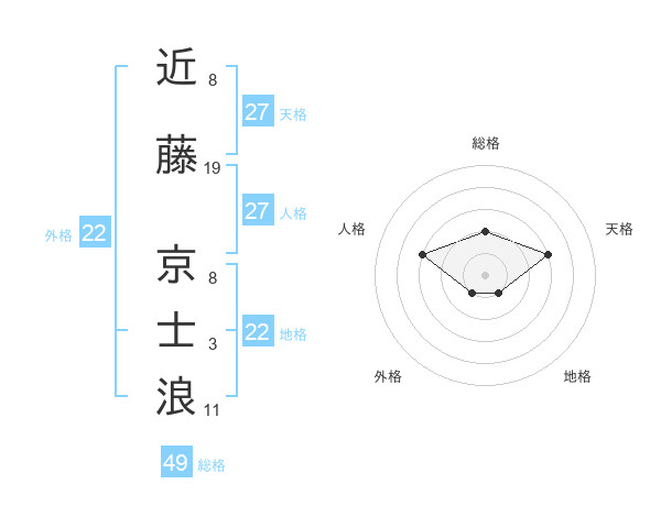 近藤 京士浪さんを姓名の画数から五運を鑑定