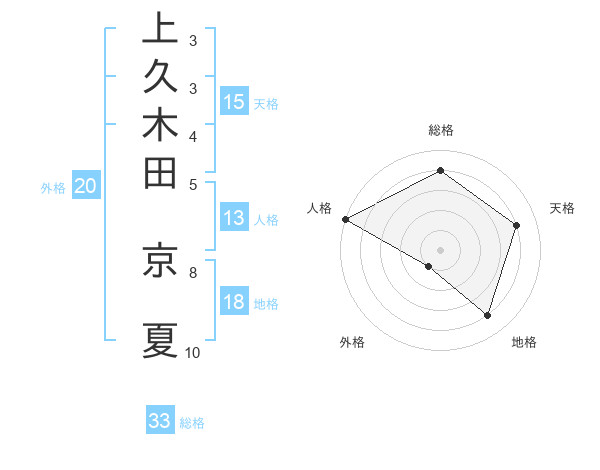上久木田 京夏さんを姓名の画数から五運を鑑定