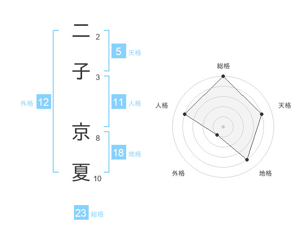 二子 京夏さんの天格は5画の4点!