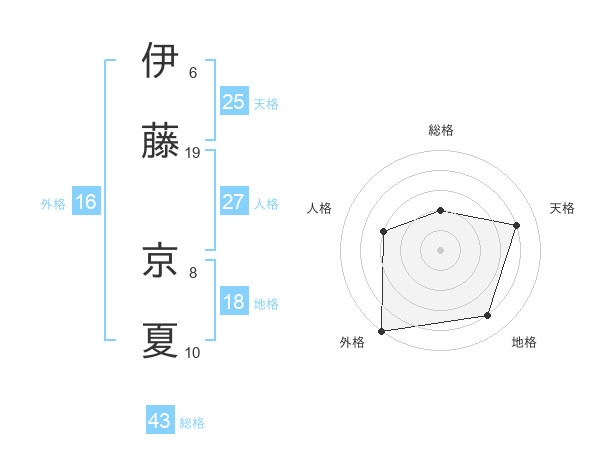 伊藤 京夏さんを姓名の画数から五運を鑑定