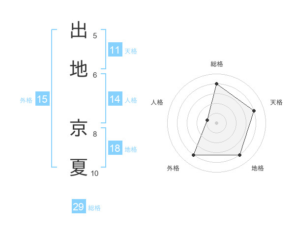 出地 京夏さんを姓名の画数から五運を鑑定