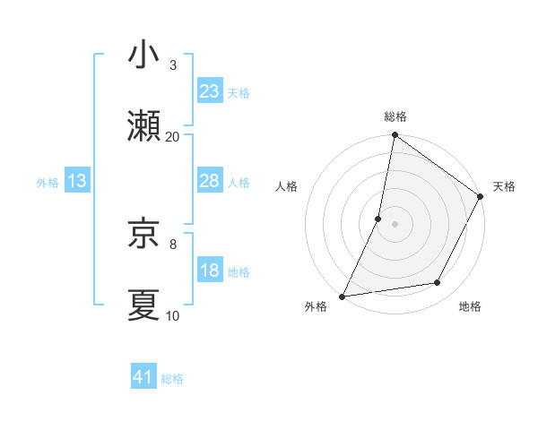 小瀬 京夏さんの外格は13画の5点!