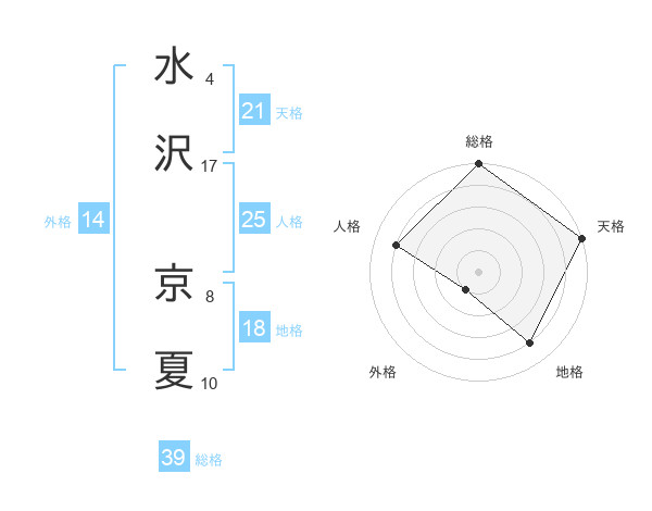 水沢 京夏さんを姓名の画数から五運を鑑定