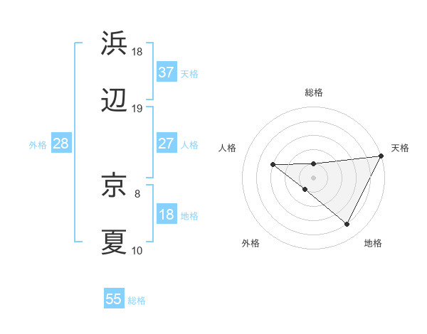 浜辺 京夏さんの総格は55画の1点!