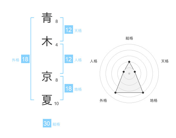 本サイトの鑑定結果の正当性は保証しません。鑑定結果は参考程度にお読みください。実際の名づけにご利用される場合は、姓名判断についてご自身でよくお調べください。