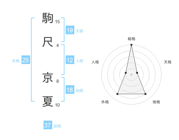 駒尺 京夏さんの総格は37画の5点!
