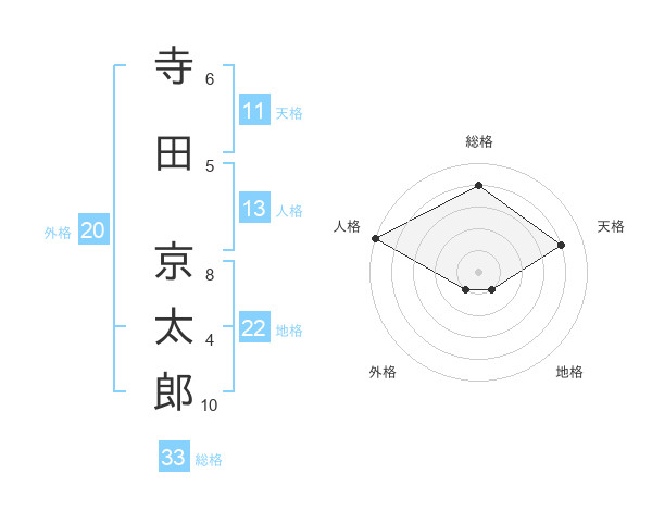 寺田 京太郎さんを姓名の画数から五運を鑑定