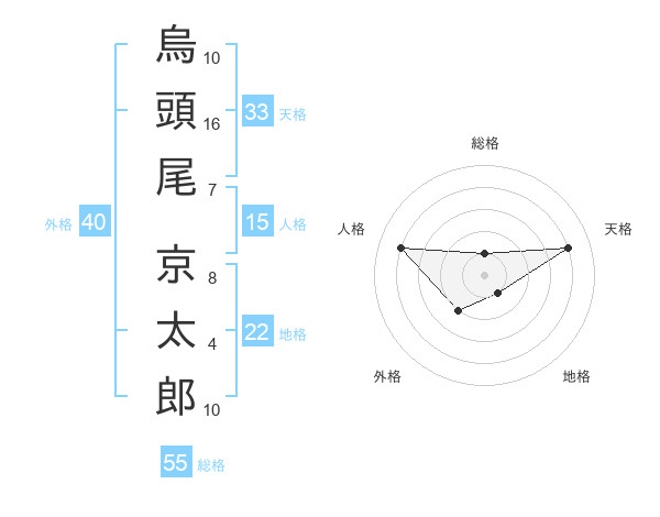 烏頭尾 京太郎さんを姓名の画数から五運を鑑定