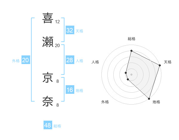 喜瀬 京奈さんの総格は48画の4点!