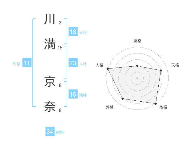 川満 京奈さんの天格は18画の4点!