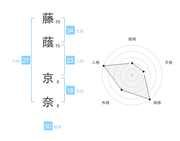 藤蔭 京奈さんの総格は50画の2点!