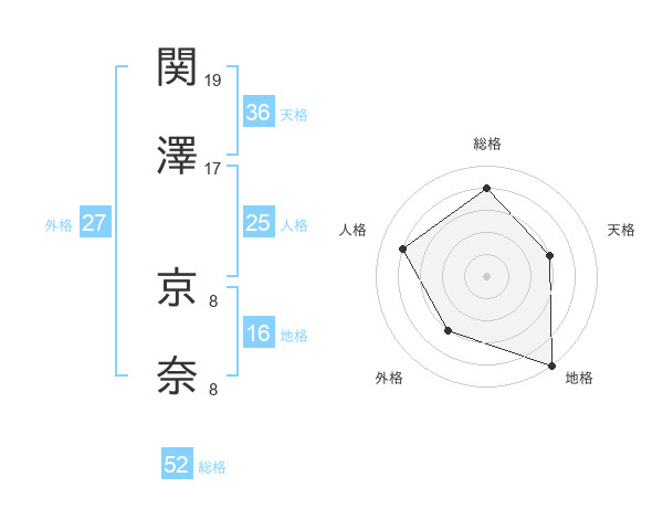 関澤 京奈さんを姓名の画数から五運を鑑定