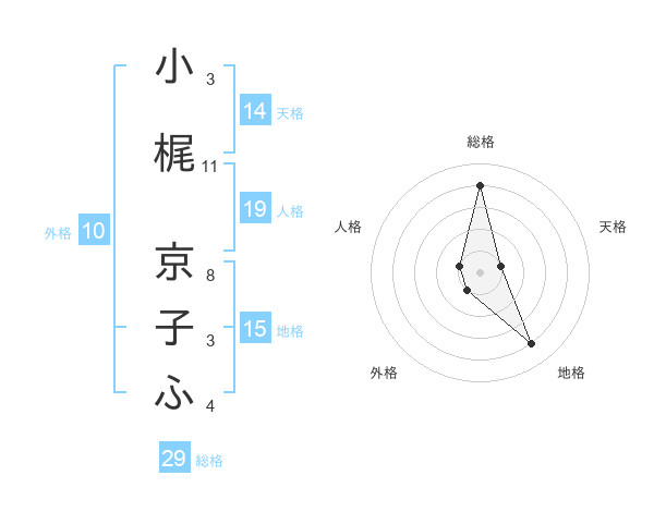 小梶 京子ふさんを姓名の画数から五運を鑑定